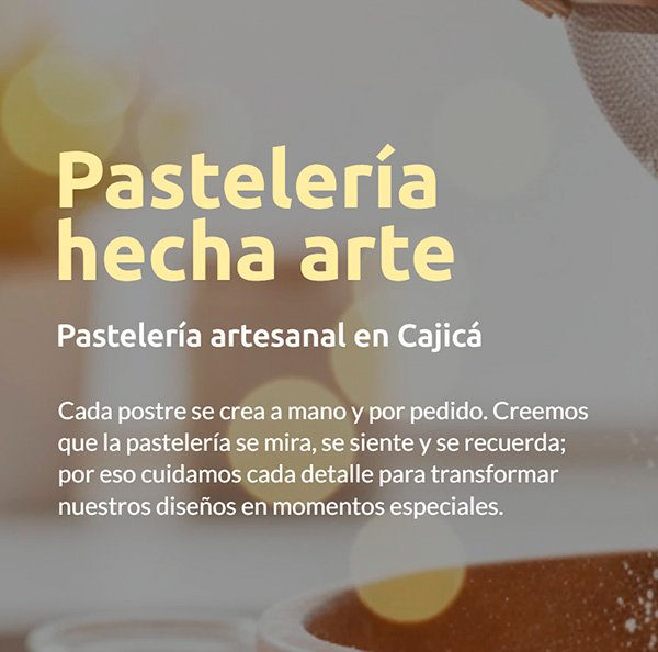 Diseño y desarrollo desde cero de una página web no-code para una pastelería artesanal que no contaba con estructura digital previa.